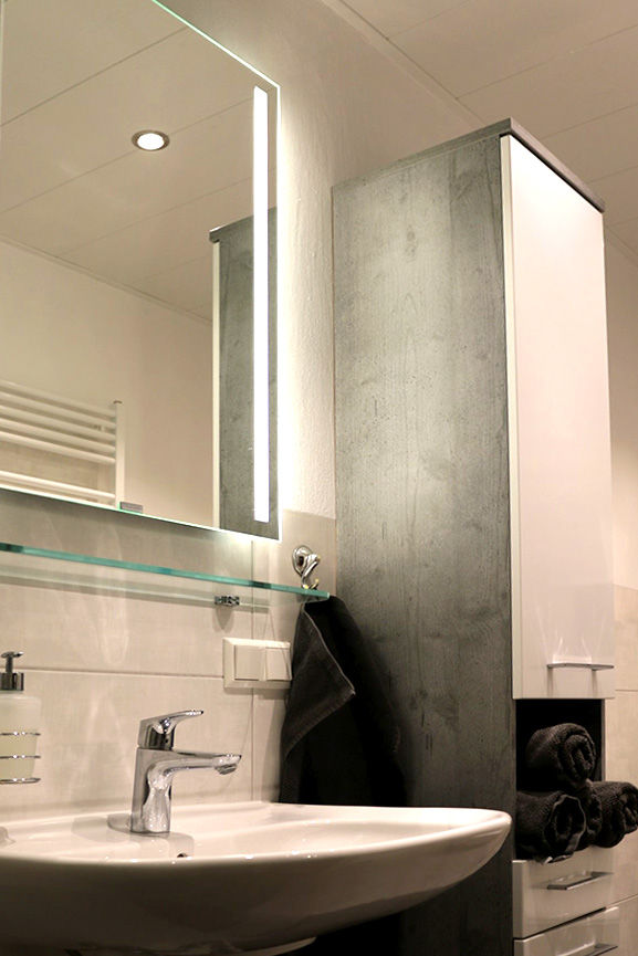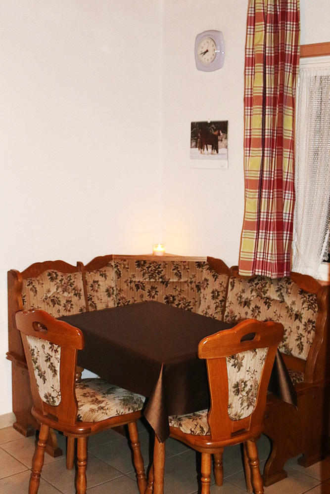 Die Ferienwohnung mit 70qm für 2-5 Personen ist komplett und stilvoll eingerichtet und umfasst 2 Schlafzimmer, 1 Wohnzimmer mit gemütlichem Kachelofen und zusätzlicher Schlafcouch, 1 Küche sowie Dusche, Bad und WC.